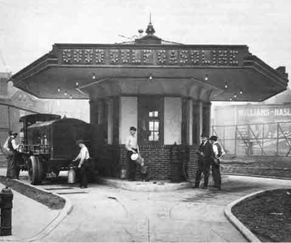 Citation Information: Article Title: “First Gas Pump and Service Station.” Authors: B.A. Wells and K.L. Wells. Website Name: American Oil & Gas Historical Society. URL: https://aoghs.org/transportation/first-gas-pump-and-service-stations. Last Updated: December 1, 2025. Original Published Date: March 14, 2013.