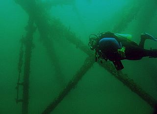 Offshore platforms make good artificial reefs. The open design attracts fish — and divers — where they can swim easily through the circulating water. Photo courtesy U.S. Bureau of Safety and Environmental Enforcement.