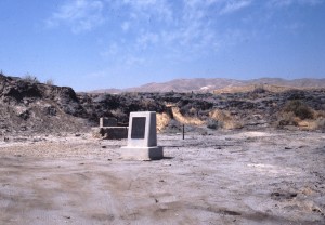 A marker and remnants of a sand berm north of Maricopa, California, mark the site of a 1910 Union Oil gusher that flowed uncontrolled for 18 months. Photo courtesy San Joaquin Valley Geology.